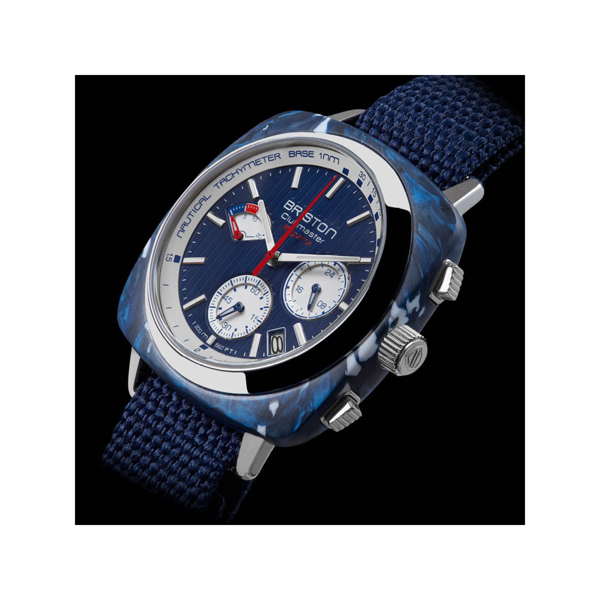 À l'occasion de la sortie de la nouvelle collection Clubmaster Regatta, Briston s'est associé à l'ONG Les Plus Belles Baies du Monde dont la mission est de protéger les côtes et les océans à travers le monde. Cette association a permis la création d'un modèle unique innovant avec un boitier en plastique recyclé bleu océan et d'un bracelet type NATO en fibre de plastique repêché en mer Méditerranée et recyclé.